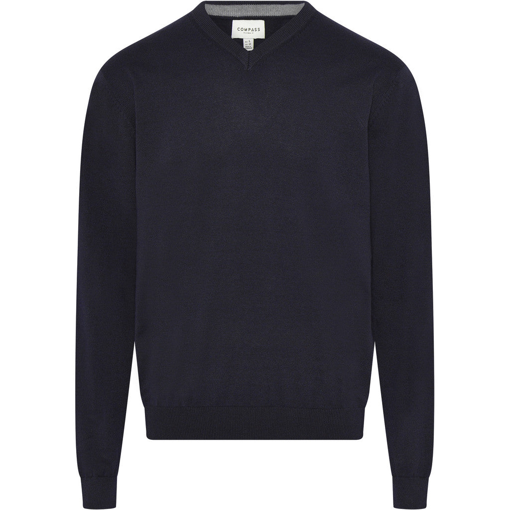 Knit Dolux V-Neck with contrast. 12g fully fashioned. Light and comfortable
